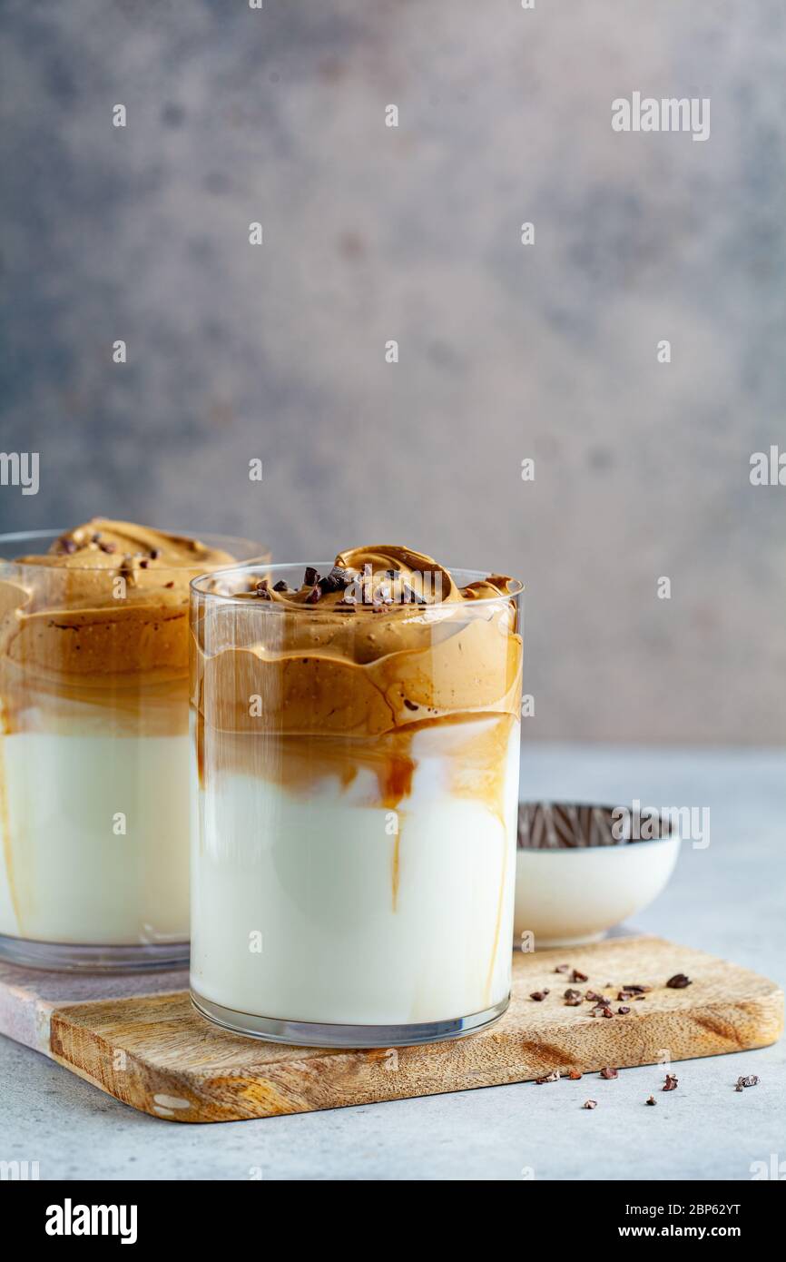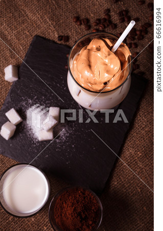 Korean?Iced Coffee - Dalgona Frothy Coffee In Glass On Grey Trend Korean Drink Stock Photo Crushpixel : Cover and shake for about 30 seconds until mixed well.